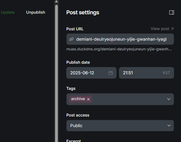 태그 속성에 보면 slug 를 잘봐야 한다. 대부분 name과 같이 되는데 위처럼 임의대로 바뀌는 경우가 있으니 확인해 줘야 한다.