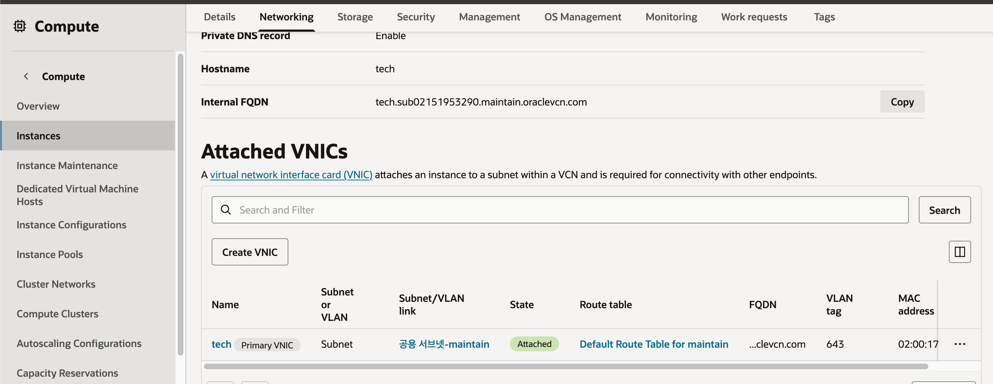 메뉴- compute-내가 만든 VM선택- network - attache VNIC